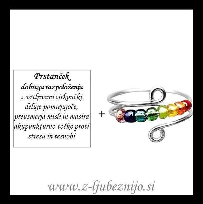 S svojimi cirkončki nam preusmerja stresne misli in napetosti, ko jih vrtimo na prilagodljivi osnovi obroča.