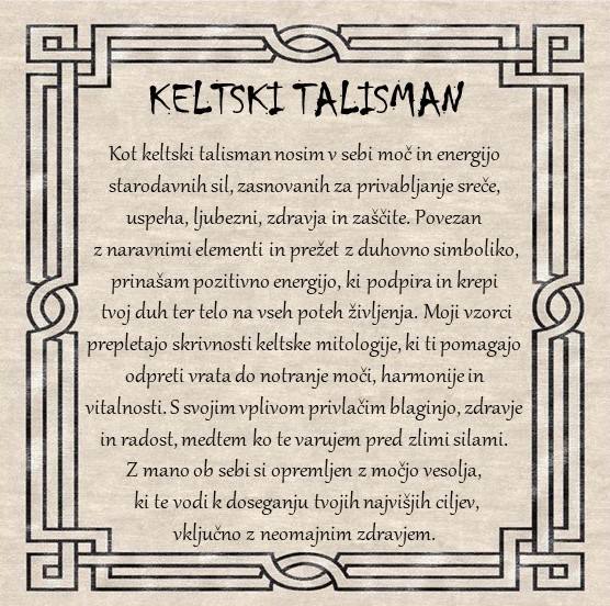 Nosimo jo za privabljanje pozitivnih energij, kot so sreča, uspeh in blaginja. Keltski simboli delujejo kot močni energijski magneti, ki pritegnejo obilje in pomagajo nosilcu uresničiti cilje. Prav tako ta ogrlica ščiti pred vsemi zlobnimi silami, negativnimi vplivi in prekletstvi, ki jih lahko usmerijo sovražno nastrojeni ljudje. Talisman je kot nevidni ščit, ki nosilca varuje pred škodljivimi energijami in ga ohranja v varnem energijskem polju.