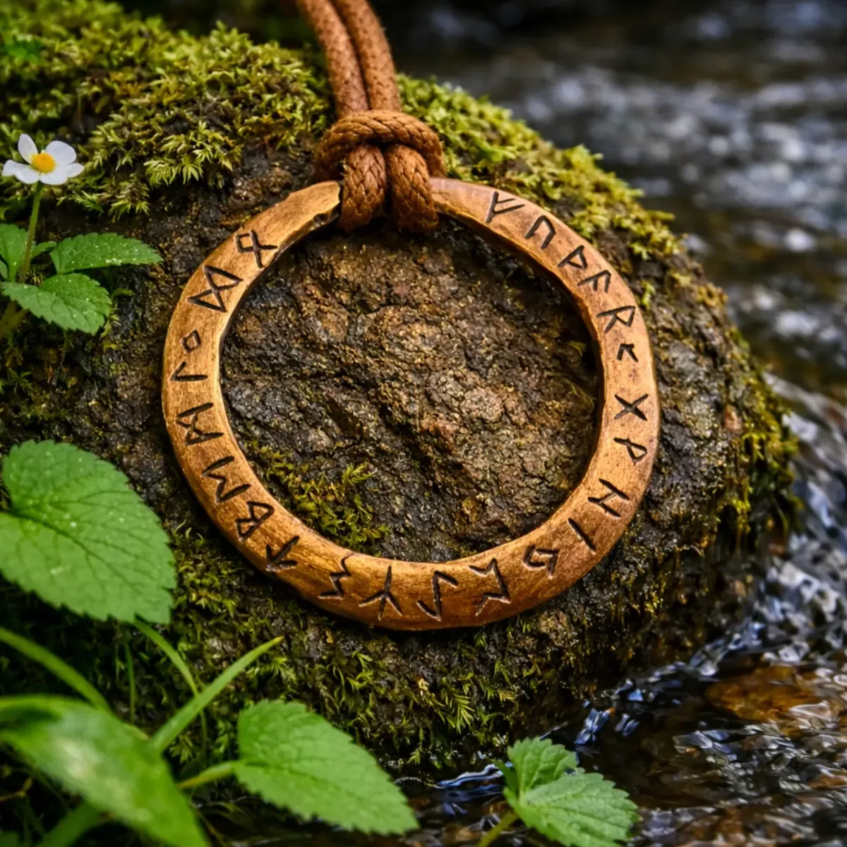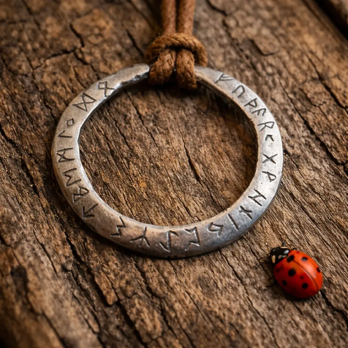 Ta amulet v obliki kroga simbolizira večnost, celovitost in neskončen tok energije. Krog je eden najstarejših simbolov v človeški zgodovini in predstavlja harmonijo med človekom, naravo in vesoljem. Runeski znaki, ki obkrožajo amulet, ustvarjajo občutek skrivnostnosti in starodavne modrosti, kot bi nosili delček nordijske mitologije vedno s seboj.