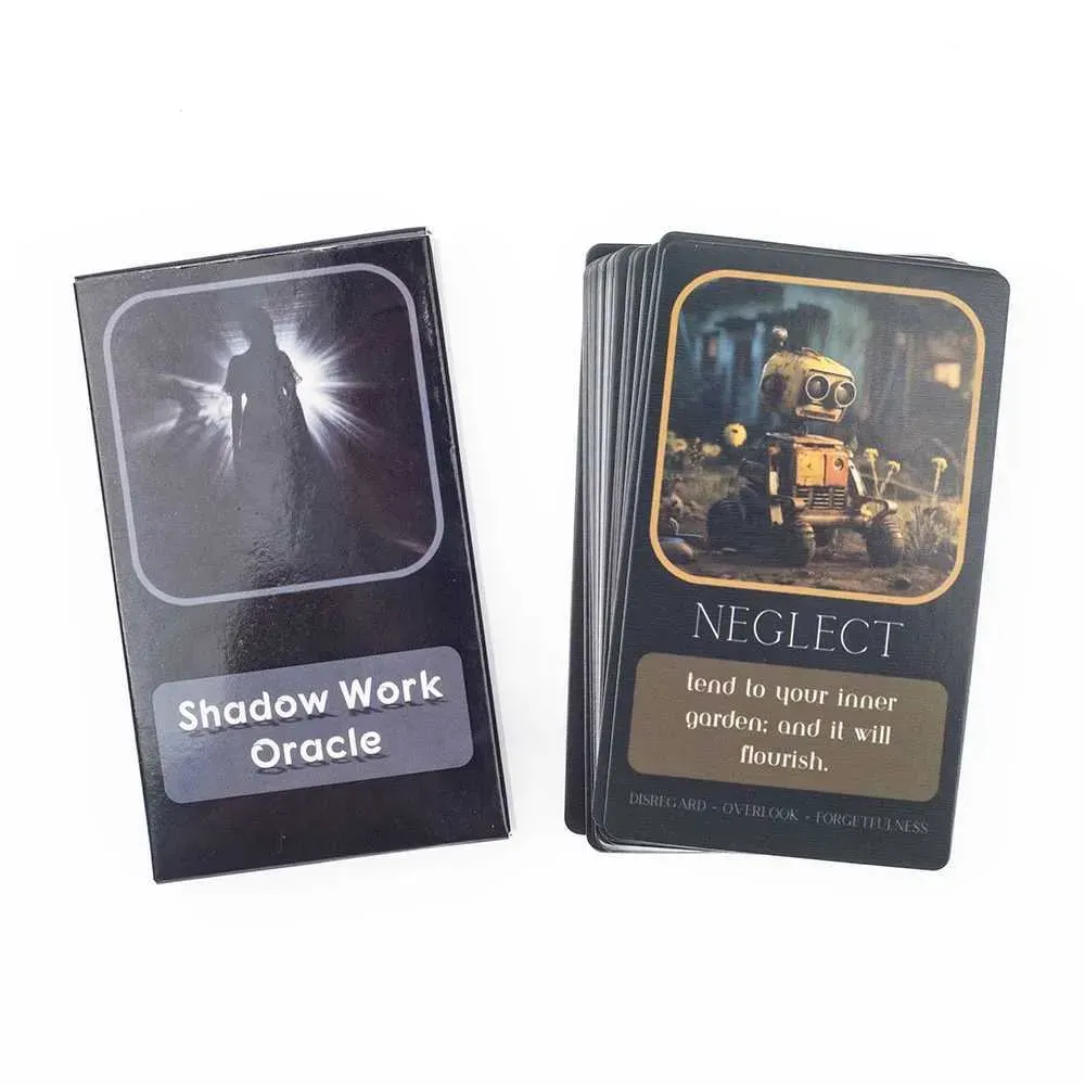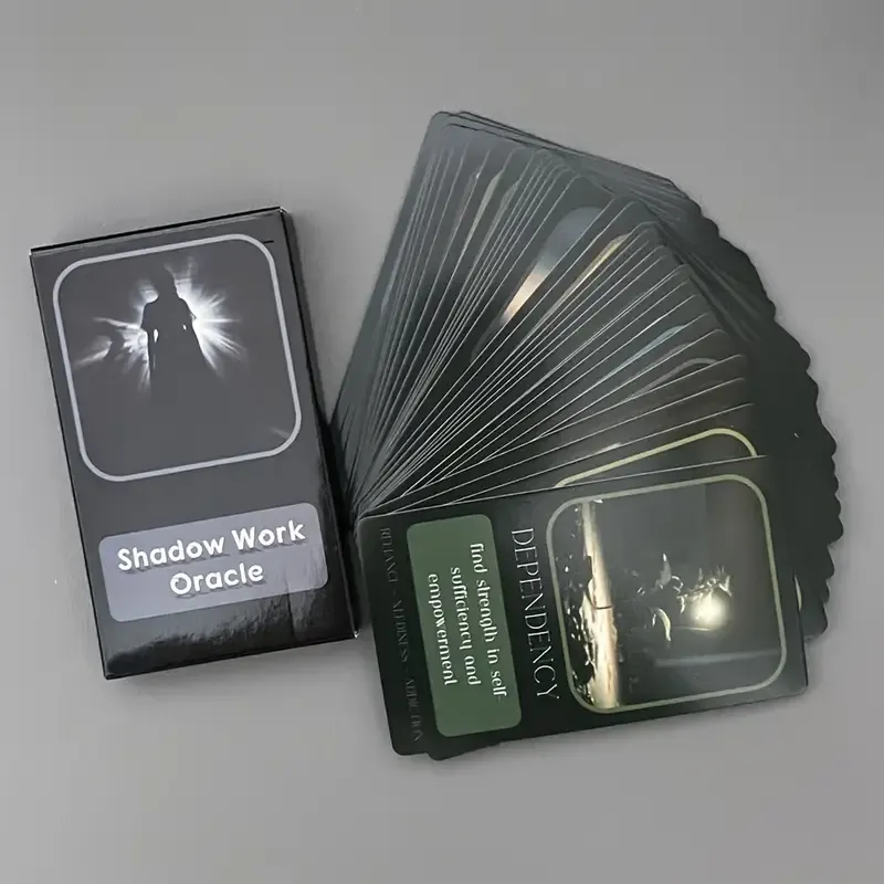Vsak izmed nas nosi v sebi svetlobo in senco. Senca ni sovražnik – je tihi del nas, ki hrani spomine, strahove, nezaceljene rane in potlačena čustva. Komplet Orakelj naših senc je zasnovan kot nežno, a močno orodje za soočanje s temi skritimi kotički duše. Vabi te, da pogledaš vase, brez strahu, z odprtim srcem in pogumom, da svojo senco sprejmeš.