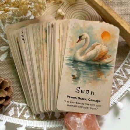 Posebnost kompleta je, da poleg kart prejmete tudi naravni kristal, ki služi kot podporno orodje za lažje povezovanje z energijo živali. Kristal deluje kot most – med vami in sporočilom, med vprašanjem in odgovorom.