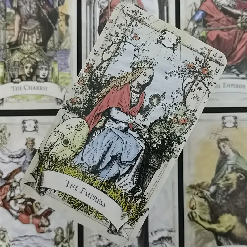 Ilustracije v starinskem slogu ostajajo zvesto povezane s klasično simboliko: modreci, cesarji, čarovniki, boginje in popotniki, ki nas vodijo skozi skrivnosti Velikih in Malih arkan. Te podobe so preživele čas, a še vedno vibrirajo s svojo prvinsko energijo – prepoznavne, večne in vedno aktualne. Tarot ni le orodje vedeževanja, ampak način samorazumevanja, s katerim človek pogleda onkraj vsakdanjega in prisluhne svoji intuiciji.