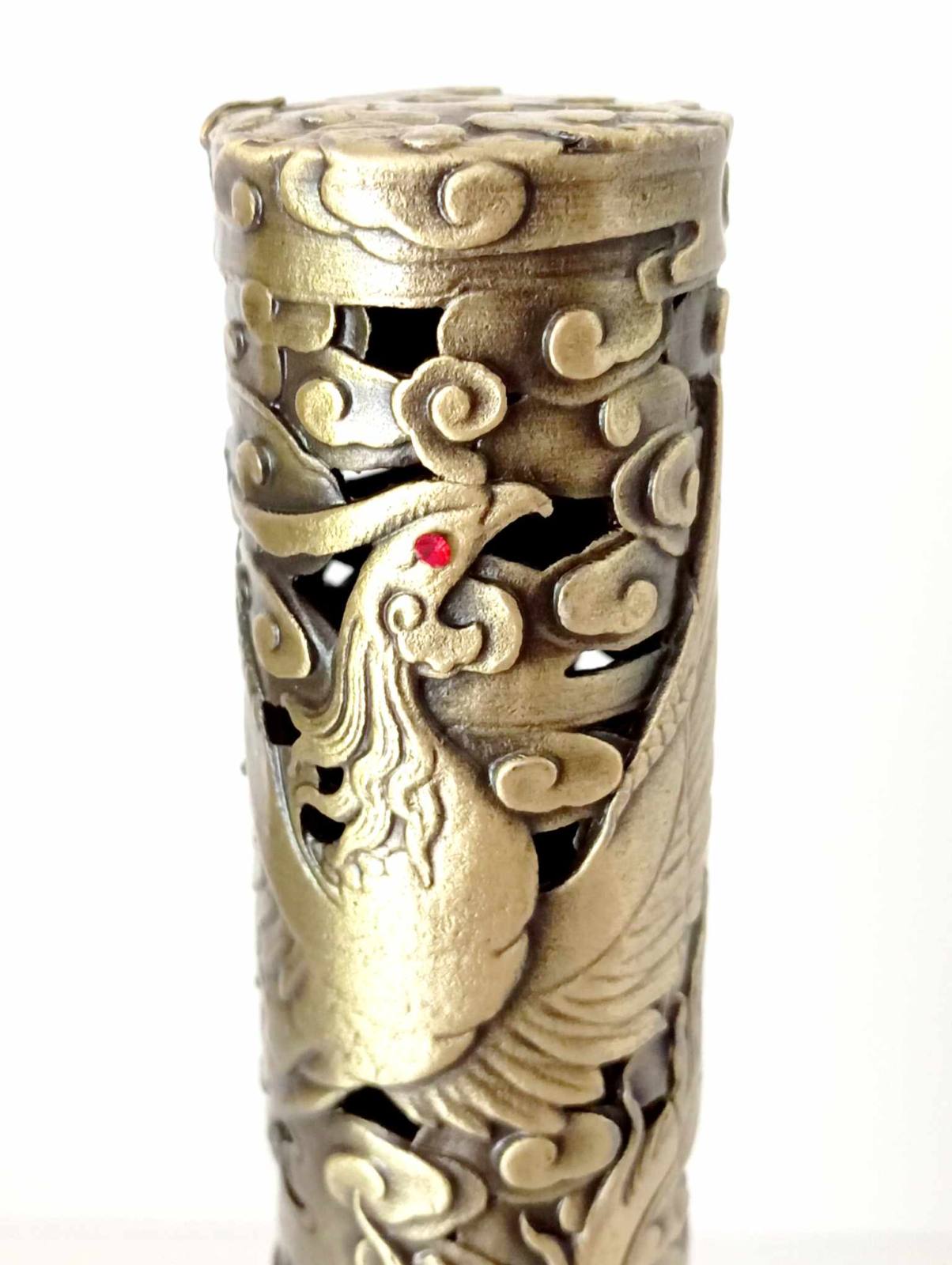 Pred vami je nosilec za kadilo, a ne navaden – to je simbol preobrazbe, preporoda in tihe moči. V njegovi srčiki prebiva feniks, mitska ptica, ki se znova in znova rojeva iz pepela – kot tudi mi, vsakič znova, ko se odločimo stopiti vase.