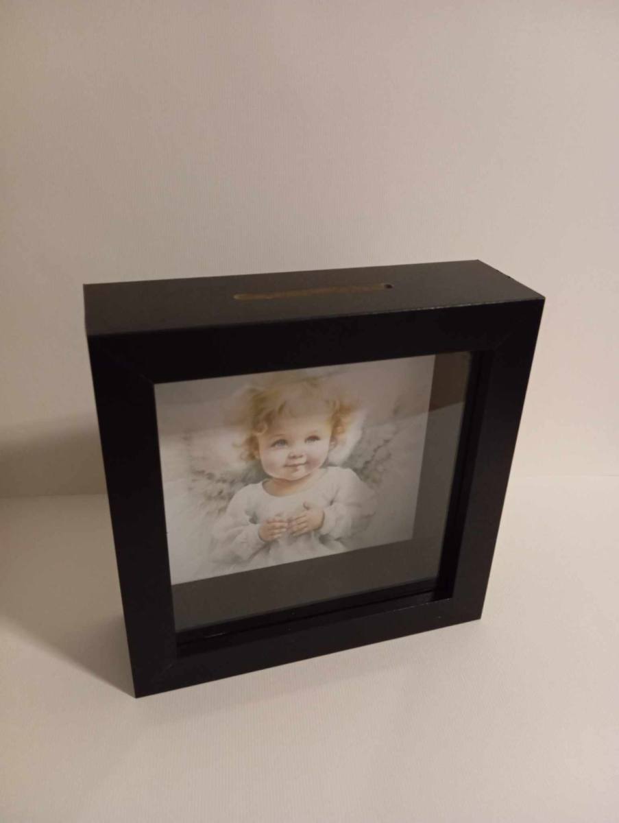 Naš hranilnik ima stekleno sprednjo ploščo, ki omogoča jasen pogled na sliko v ozadju. A to ni le običajna slika - med steklom in sliko je namreč prostor, ki je idealen za shranjevanje denarja. Ta predel omogoča, da lahko hranilnik uporabljate tako kot varno mesto za hranjenje gotovine ali pa ga preprosto postavite na vidno mesto kot izjemno dekoracijo ali sliko v vašem domu.