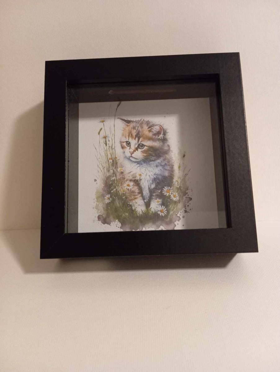 Naš hranilnik ima stekleno sprednjo ploščo, ki omogoča jasen pogled na sliko v ozadju. A to ni le običajna slika - med steklom in sliko je namreč prostor, ki je idealen za shranjevanje denarja. Ta predel omogoča, da lahko hranilnik uporabljate tako kot varno mesto za hranjenje gotovine ali pa ga preprosto postavite na vidno mesto kot izjemno dekoracijo ali sliko v vašem domu.