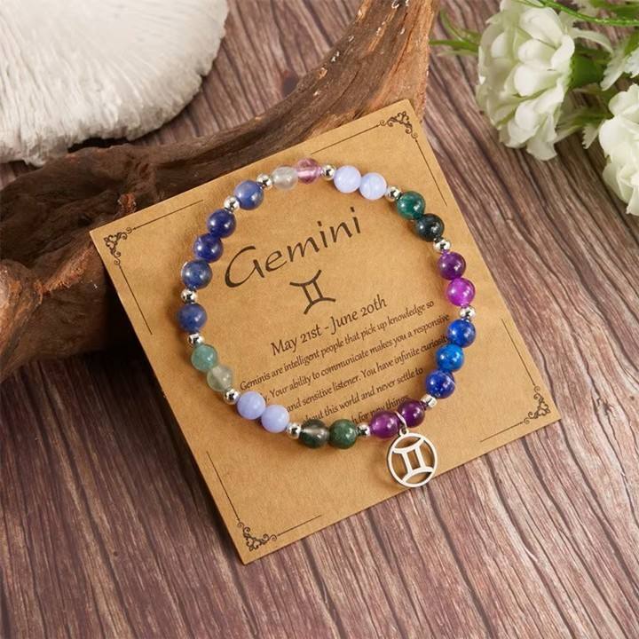 Zapestnica iz naravnih kristalov Dvojčkom prinaša stabilnost, zbranost in notranji fokus. Kristali, ki so nastajali milijone let skozi naravne procese, nosijo v sebi moč zemlje in mir, ki ga Dvojčki pogosto potrebujejo. Ko jo nosijo, jim kristali pomagajo uravnotežiti hitro miselno energijo, zmanjšati notranji nemir ter najti jasnost pri pomembnih odločitvah. Simbol Dvojčkov na zapestnici okrepi njihove naravne darove – komunikacijo, radovednost in odprtost – a jih hkrati vodi k notranjemu ravnovesju. Ta komplet kristalov in simbola postane njihov zaveznik, da se lažje povežejo sami s sabo in svojo resnico.