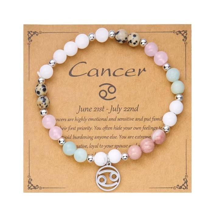 Naravni kristali na zapestnici so čudovit pripomoček za Raka, saj mu dajejo občutek notranje varnosti in ga nežno prizemljijo. Kristali, ki so nastali v globinah zemlje skozi tisočletne procese, nosijo energijo stabilnosti in čistosti, ki Raku pomaga, da se lažje spopada s svojimi intenzivnimi čustvi. Ko zapestnico nosi, ga kristali podpirajo pri spuščanju starega bremena in mu pomagajo najti notranji mir. Simbol Raka okrepi njegovo intuicijo in čustveno modrost, kristali pa mu pomagajo, da svojo ljubečo energijo deli brez izčrpanosti. Ta zapestnica je njegov zaščitni talisman, ki mu omogoča, da ostane nežen, a hkrati močan.