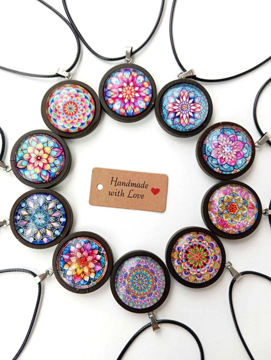 Ogrlice z mandalo v leseni osnovi so več kot le lep okras – so močno duhovno orodje, ki lahko globoko vpliva na naše počutje in ravnovesje energij. Mandala, simbol univerzalne harmonije in kroženja energije, je že stoletja uporabljena kot pripomoček za meditacijo, osredotočanje in osebno rast. Njena oblika, sestavljena iz simetričnih vzorcev, predstavlja povezavo med fizičnim in duhovnim svetom, ki nas podpira na poti k notranjemu miru in zdravju.