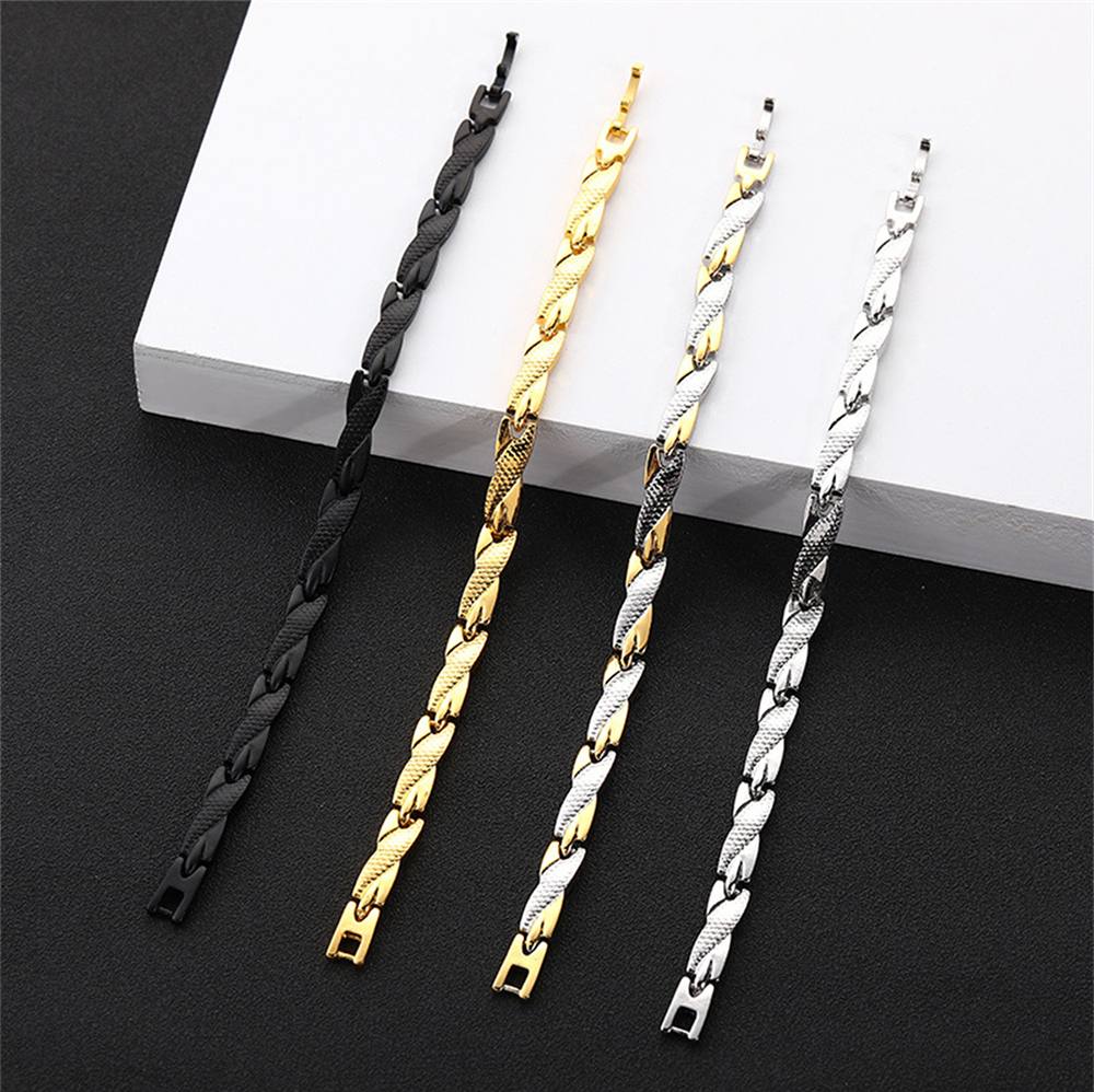 Magnetna zapestnica je na voljo v treh elegantnih barvah: črna, srebrna in srebrno-zlata. Izdelana je iz visoko kakovostnega nerjavečega jekla, ki je odporna proti obrabi in koroziji, kar zagotavlja dolgo življenjsko dobo in trajnost.