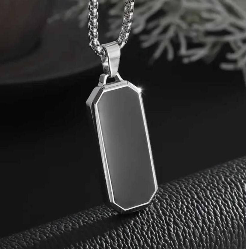 Njena zasnova je preprosta, a mogočna. Izdelana iz nerjavečega jekla, simbolizira trdnost, odločnost in odpornost – lastnosti, ki jih nosijo moški, ki jih imamo radi in spoštujemo. Temni odtenek obeska izraža globino občutkov, skrivnostnost in hkrati eleganco. Ko jo nosi, naj bo to opomnik na posebno mesto, ki ga ima v tvojem srcu.