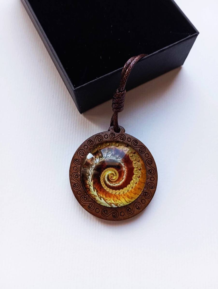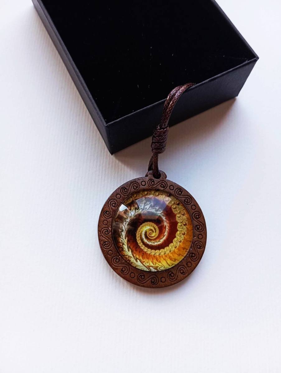 UNIKATNA Ogrlica z medaljonom iz lesa in energijskim barvnim diagramom