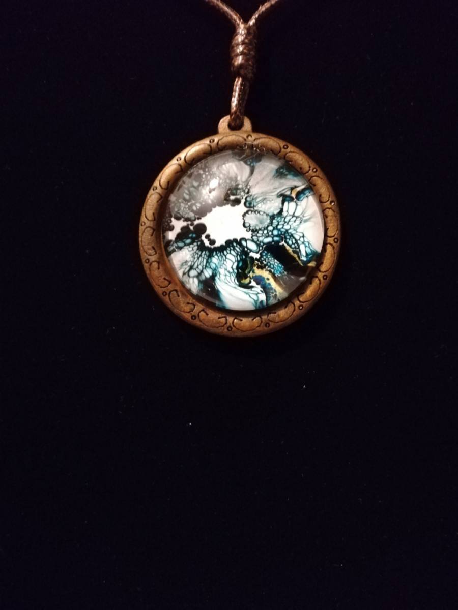 Osnova ogrlice je unikaten medaljon iz lesa.