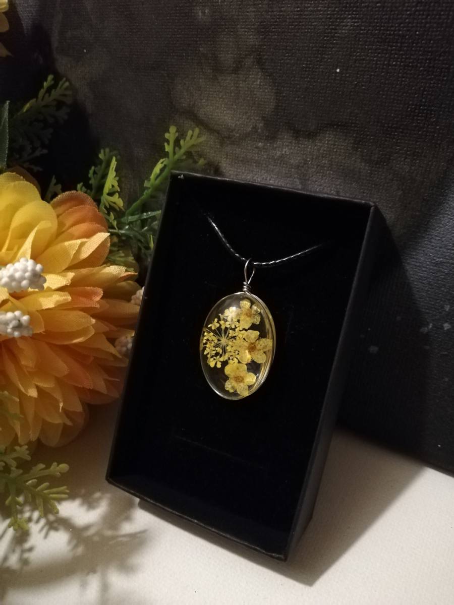 Ogrlica je iz kristalne mase v kateri je suho prešano cvetje
