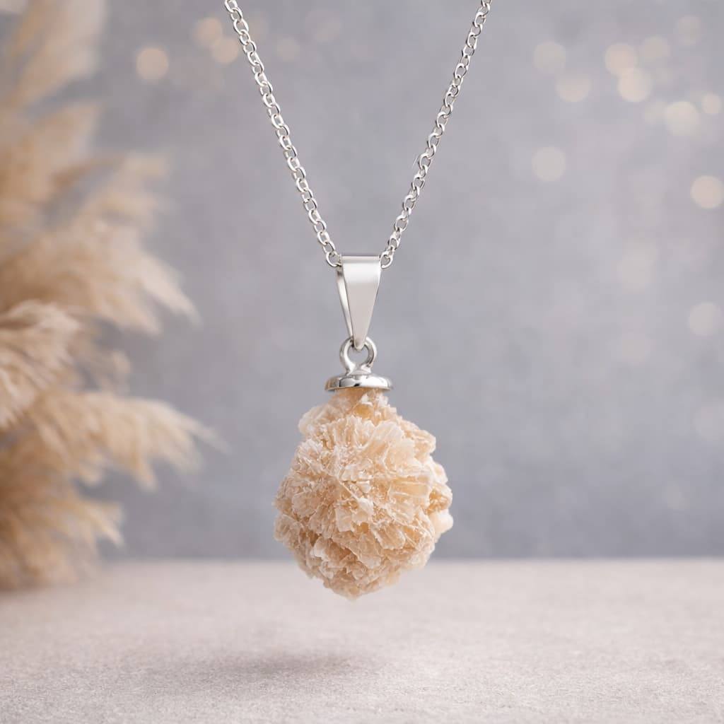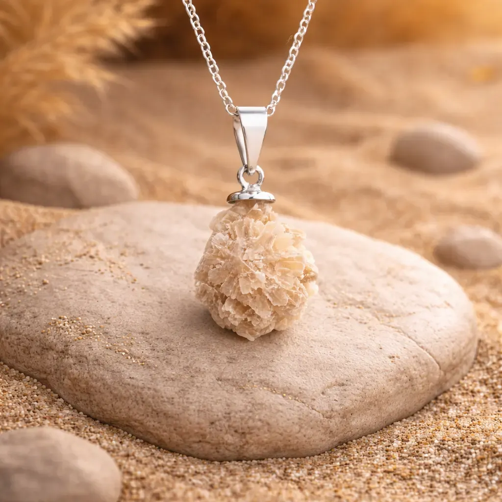 Puščavska roža je tudi simbol rasti in novih začetkov. Tako kot se kristal oblikuje počasi in potrpežljivo, nas opominja, da ima vsak proces v življenju svoj čas. Nositi ta obesek pomeni nositi sporočilo narave: da tudi v najbolj suhih in zahtevnih obdobjih lahko zacveti nekaj izjemnega.