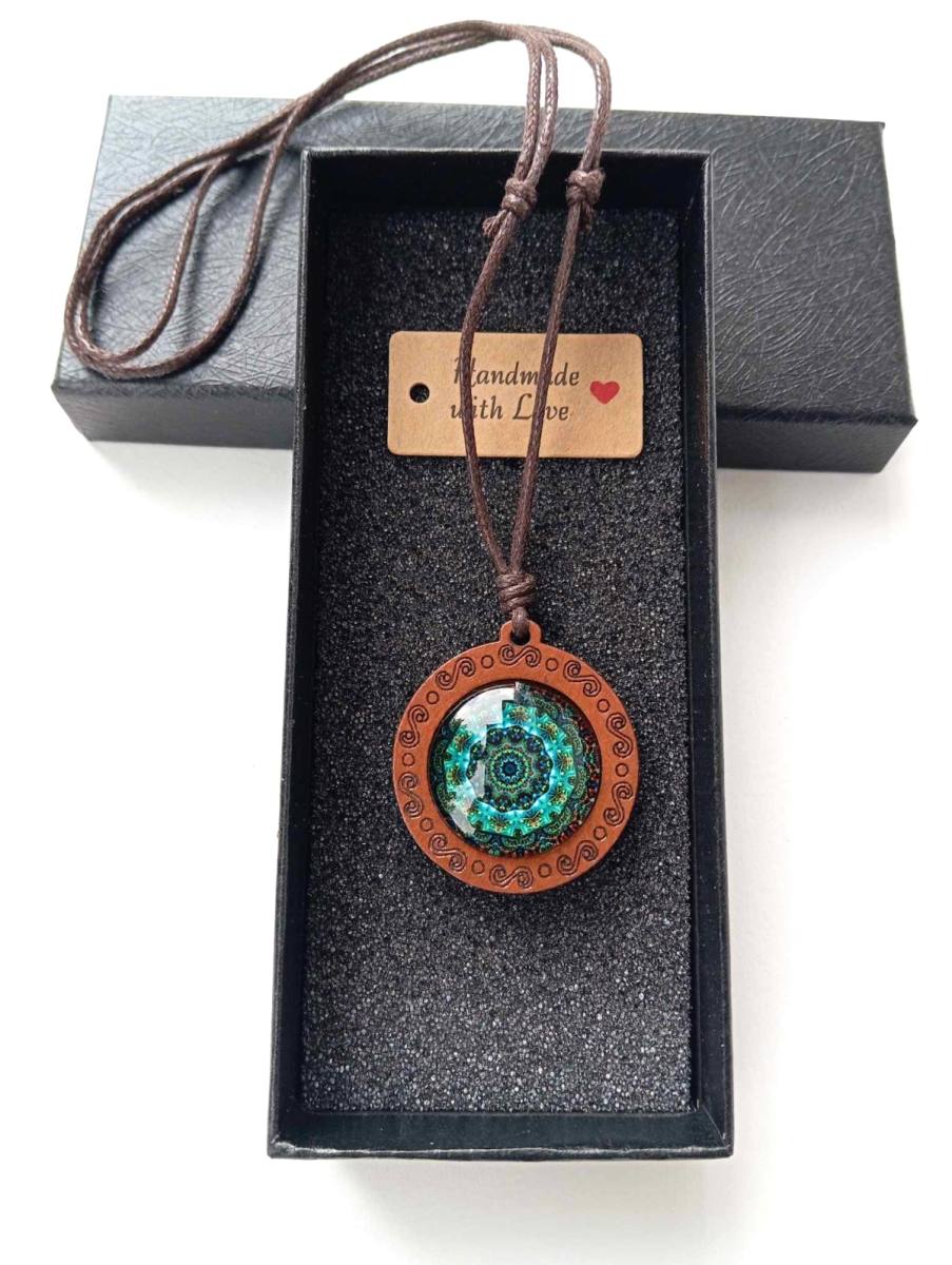 Večni Krog – Lesena Ogrlica z Mandalo je čudovit spoj naravnih elementov in duhovne simbolike, ki prinaša ravnovesje, harmonijo in globoko povezanost z naravo. Ta unikatna ogrlica je izdelana iz skrbno izbranega lesa, ki predstavlja moč in stabilnost, medtem ko je v središče vdelana steklena mandala, ki s svojo kompleksno geometrijo simbolizira večno cikličnost življenja in neprekinjen tok energije.