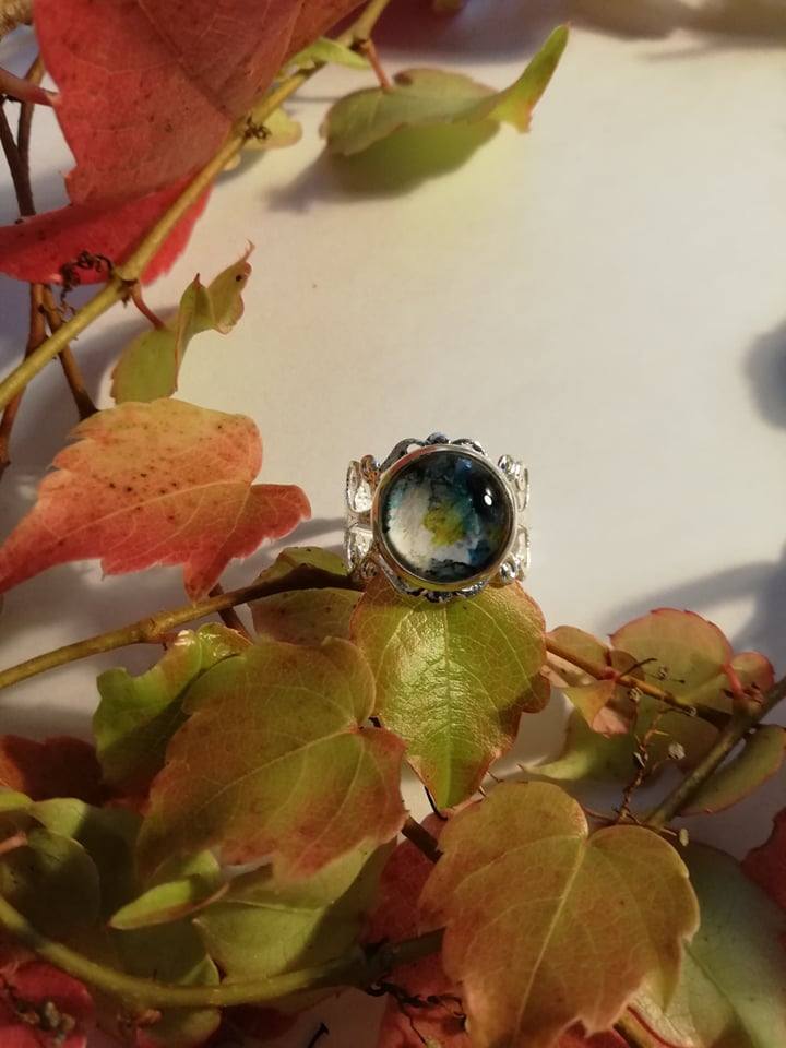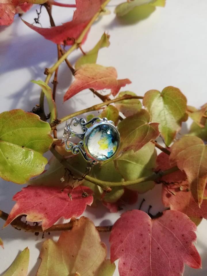Unikaten nastavljiv prstan z stekleno solzico.