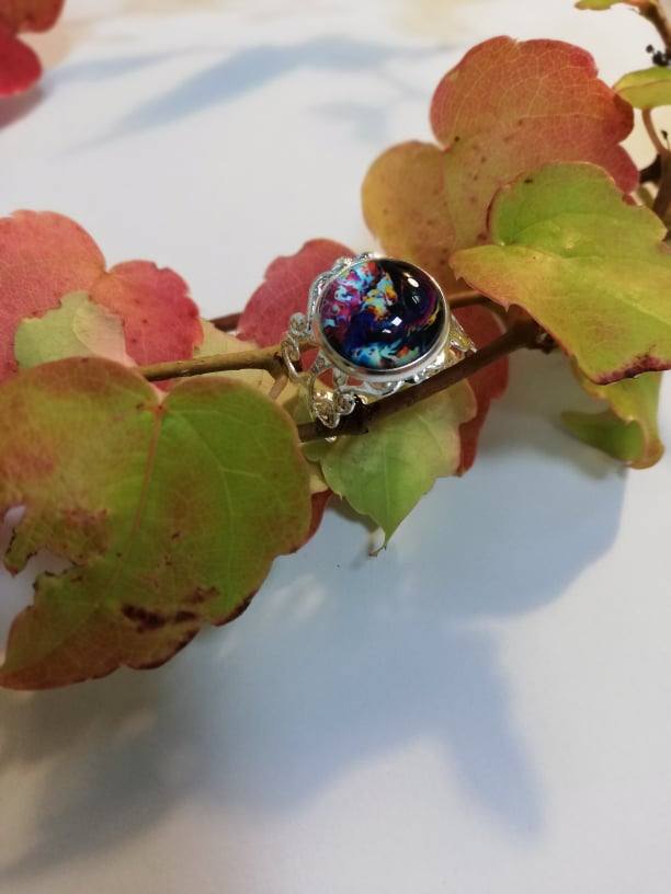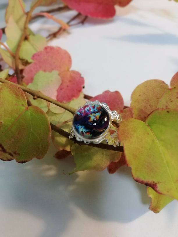 Unikaten nastavljiv prstan z stekleno solzico.