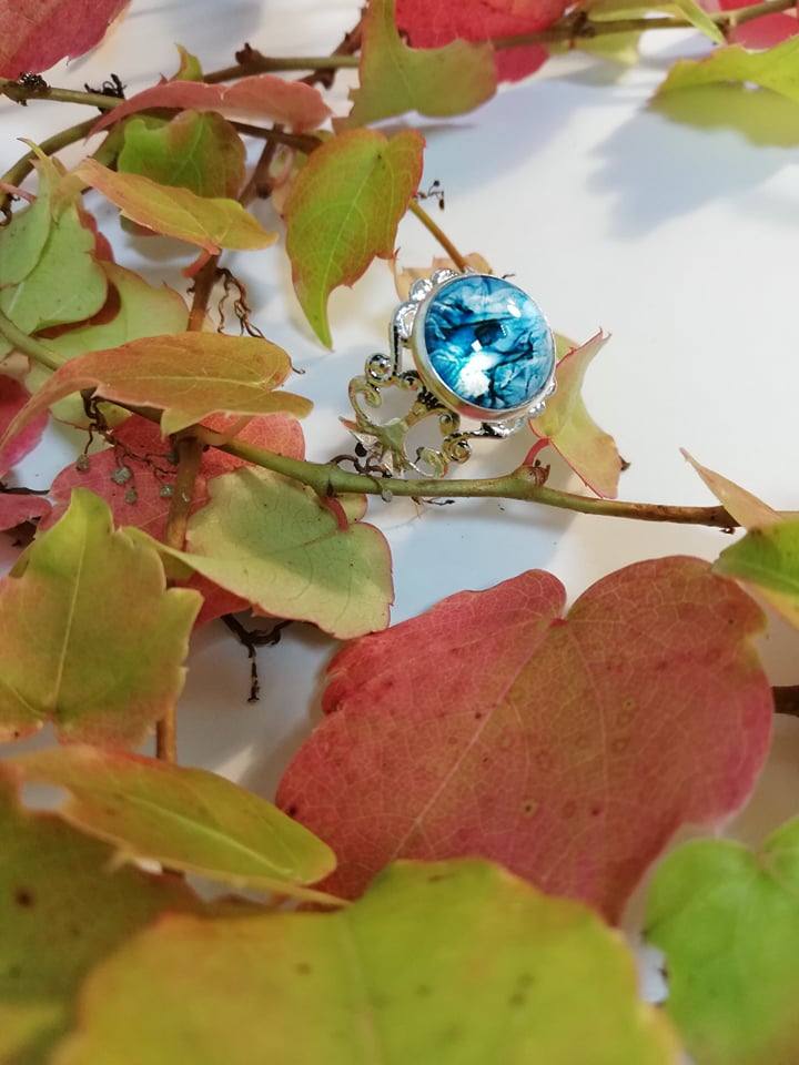 Unikaten nastavljiv prstan z stekleno solzico.