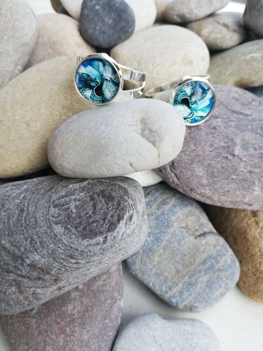 Prstan je ročno izdelan iz nastavljive kovinske osnove, ki ne rjavi in ne spremeni barve. Krasi ga steklena solzica pod katero je barvni vzorec različnih oblik in spektrov barv.