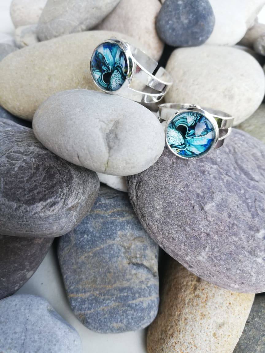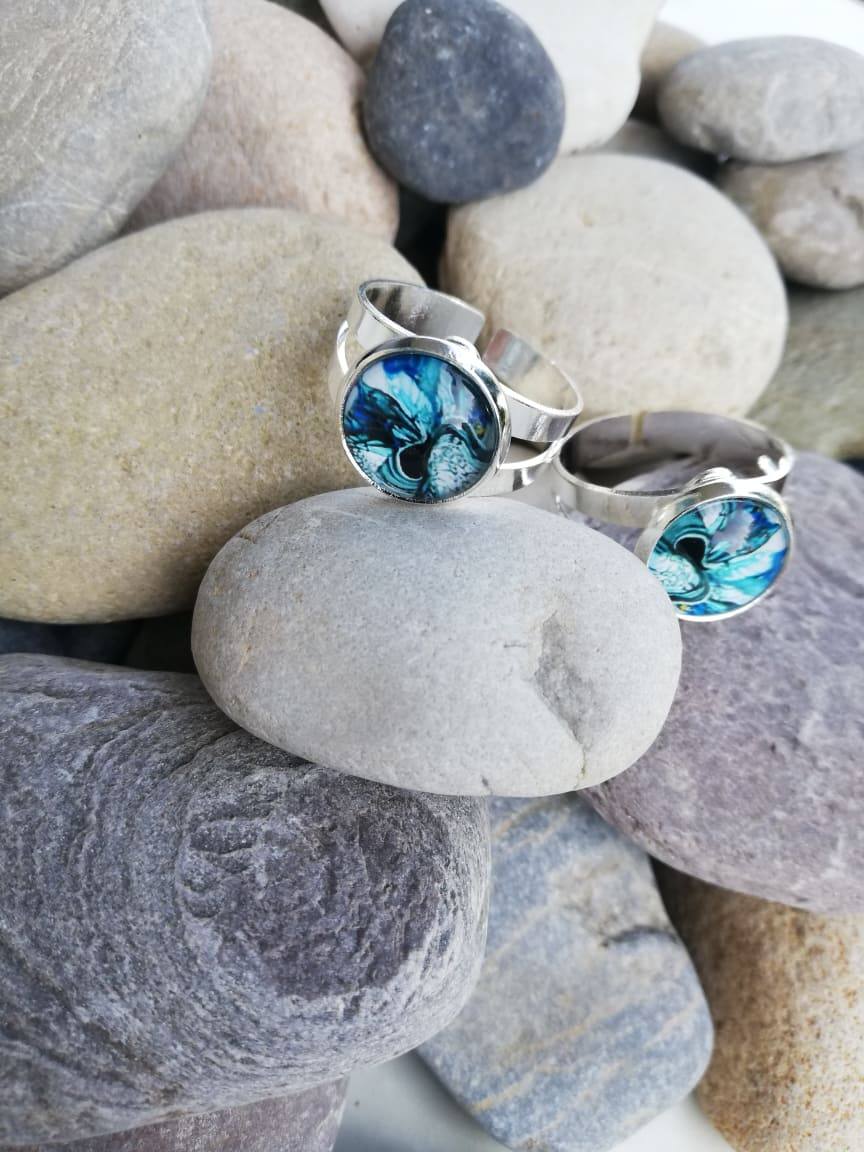 Unikaten nastavljiv prstan z stekleno solzico.