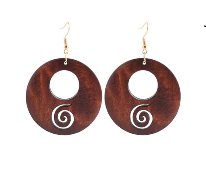 Uhani iz naravnega lesa-okrogli - spiralica