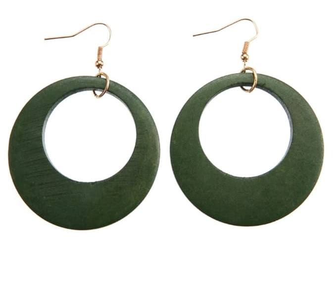 Uhani iz naravnega lesa-okrogli - zelena