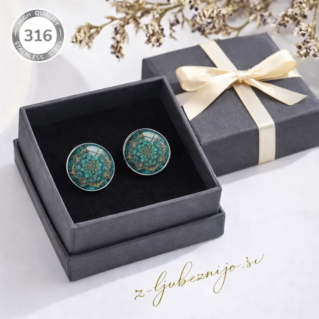 Nežni uhani iz jeklene osnove in kristalno čistega stekla, ki ustvarja občutek globine in ujame svetlobo ob vsakem gibu. Subtilen, a opazen kos, ki doda eleganco vsakemu dnevu.