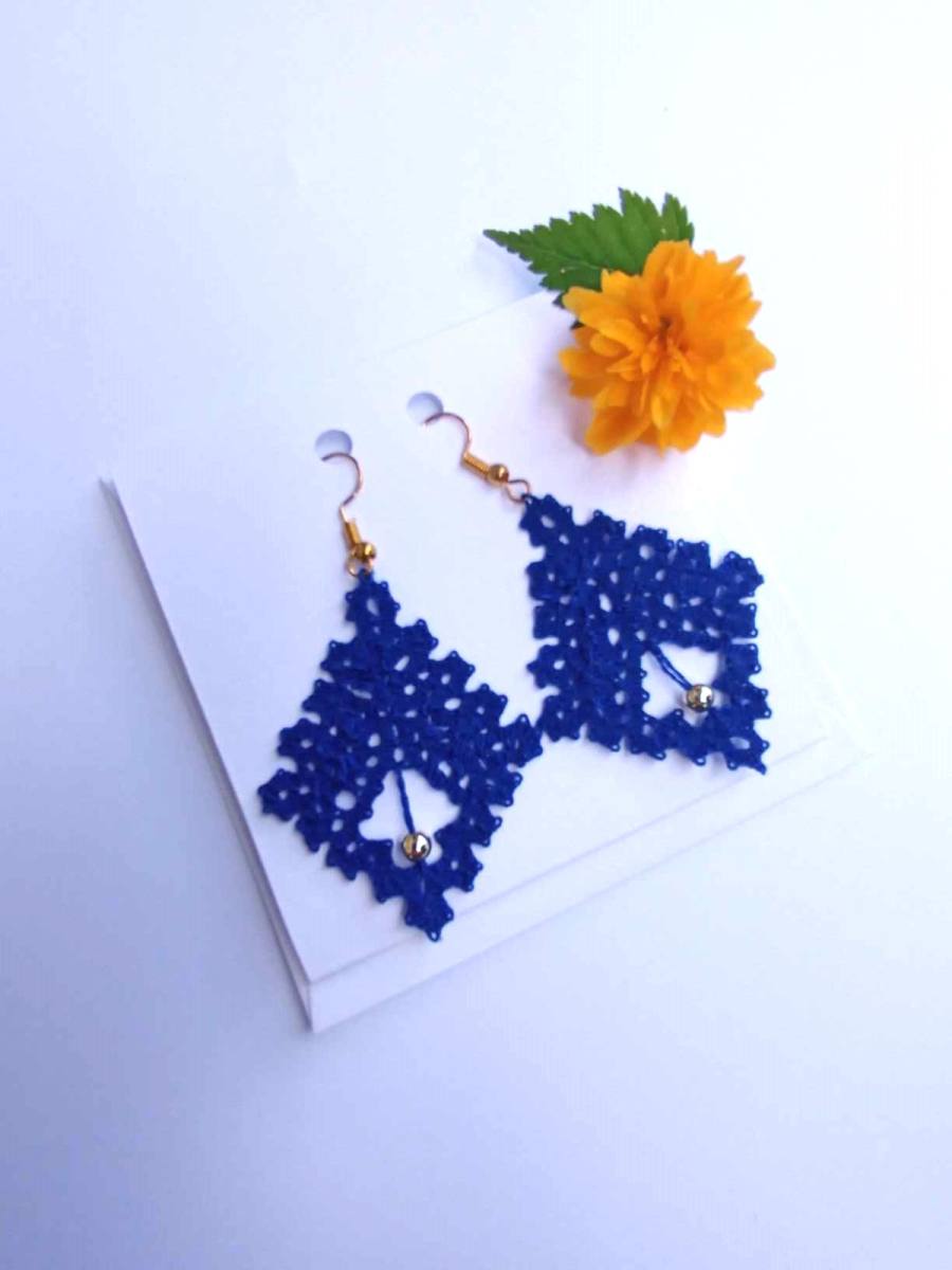 Uhani iz idrijske čipke - modra2