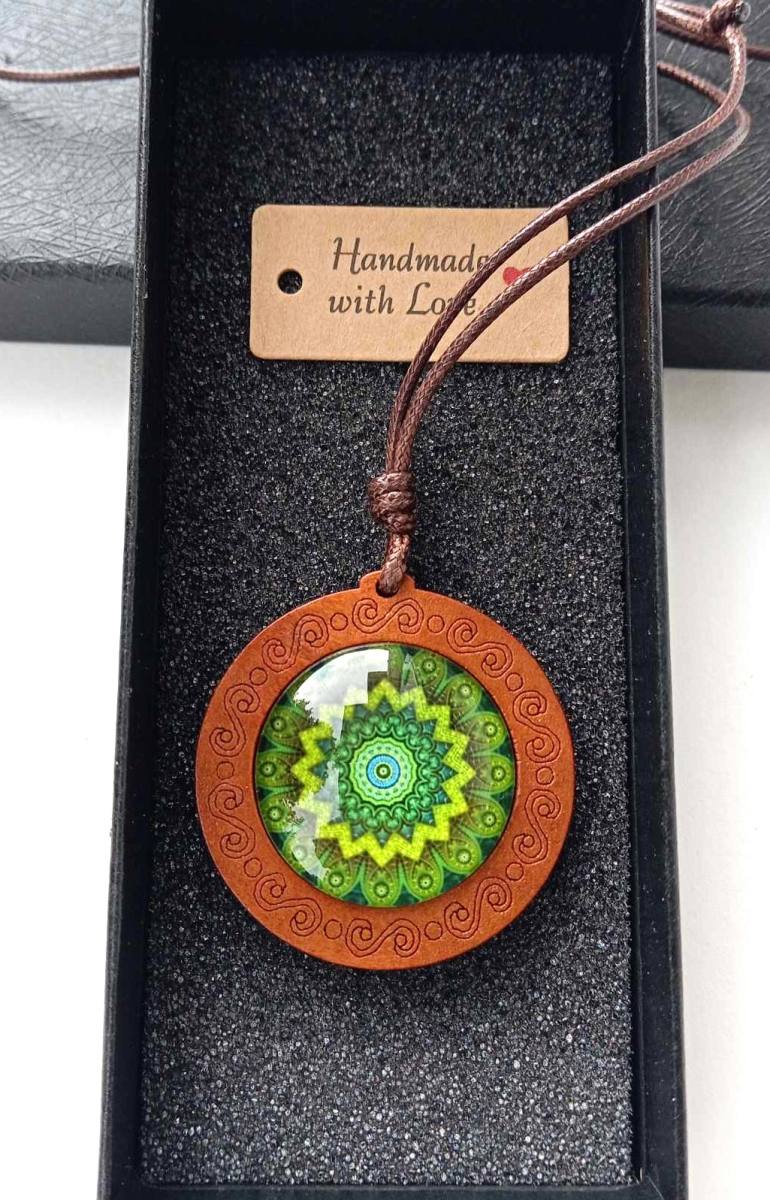 Večni Krog – Lesena Ogrlica z Mandalo je čudovit spoj naravnih elementov in duhovne simbolike, ki prinaša ravnovesje, harmonijo in globoko povezanost z naravo. Ta unikatna ogrlica je izdelana iz skrbno izbranega lesa, ki predstavlja moč in stabilnost, medtem ko je v središče vdelana steklena mandala, ki s svojo kompleksno geometrijo simbolizira večno cikličnost življenja in neprekinjen tok energije.