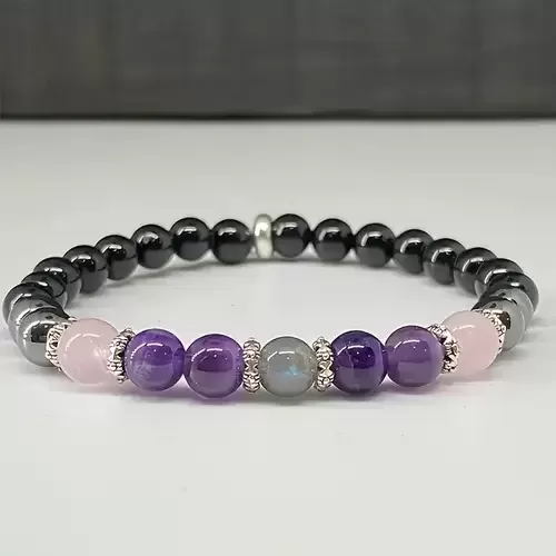 Ametist nosi energijo notranjega miru in nežne tolažbe. Pomaga umiriti misli, ko se te vrtijo brez odgovora, ter odpira prostor za sprejemanje in zaupanje. Je kamen, ki objame takrat, ko besede ne zadostujejo, in prinaša občutek, da je v kaosu še vedno mogoče najti tišino.