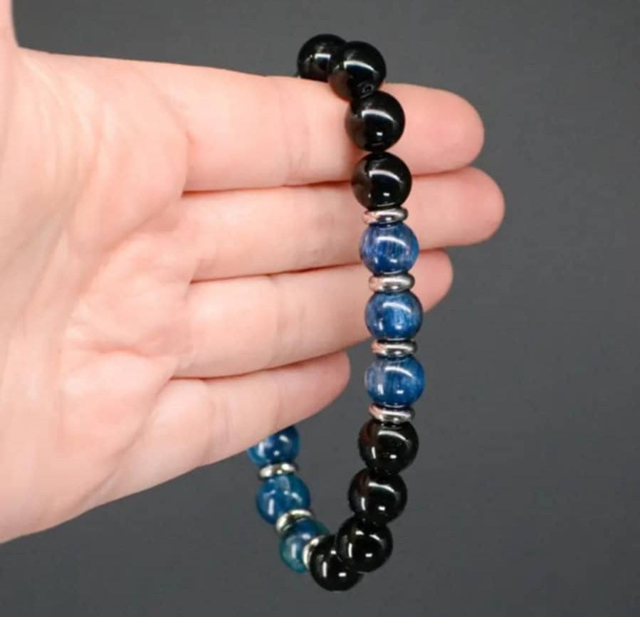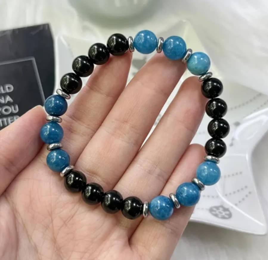 Zapestnica Vztrajaj, uspelo ti bo je simbol notranje moči in navdiha, ki združuje dve mogočni energiji – črni turmalin in modri apatit. Skupaj ustvarjata čaroben talisman, ki te podpira na poti do ciljev in te opominja, da se resničen uspeh rodi iz poguma in vztrajnosti.