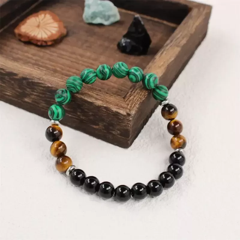Zapestnica "Zaupaj poti, ki jo hodiš" – tigrovo oko, malahit, oniks