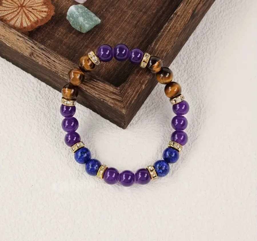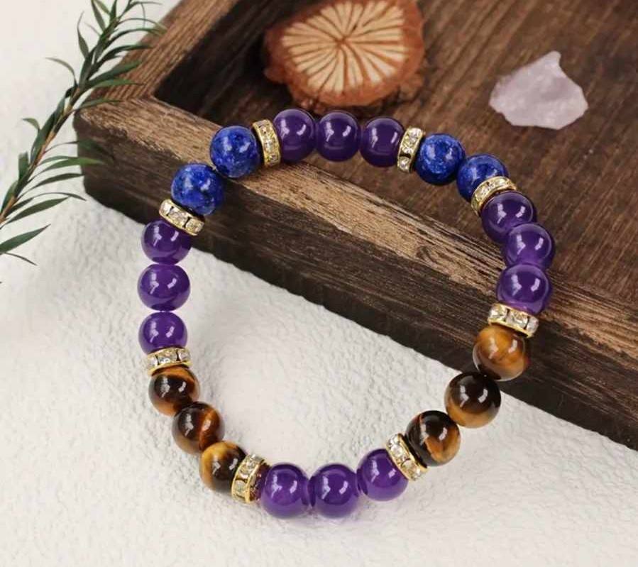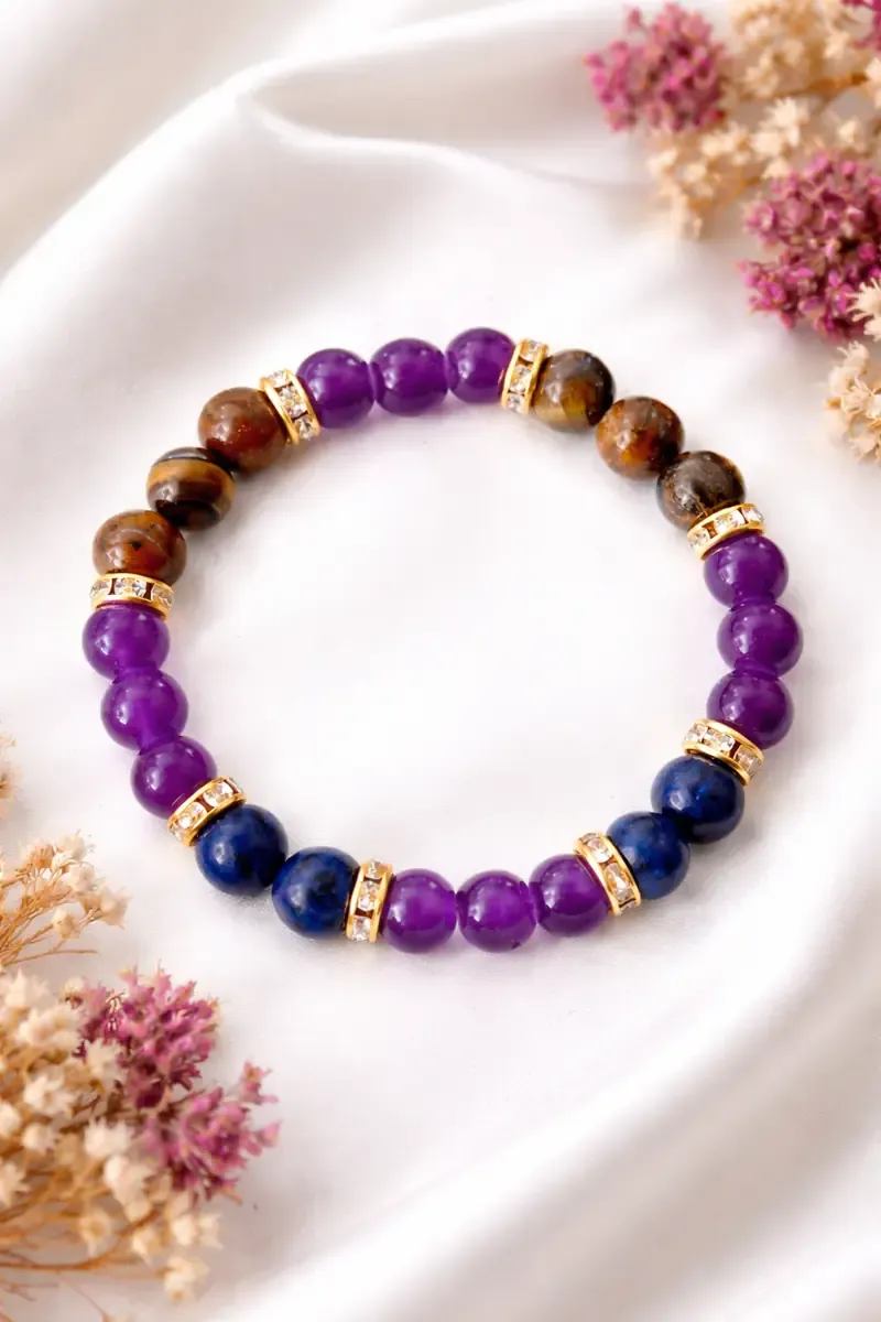 Zapestnica "Zaupaj življenju" – lapis lazuli, tigrovo oko, ametist