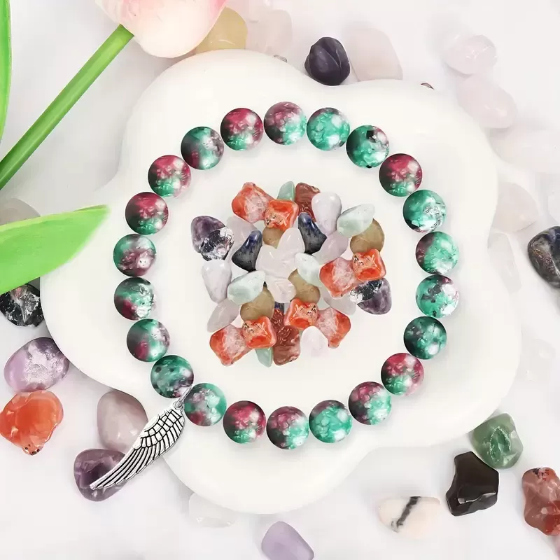 Za še globljo povezavo in podporo pa je del tega čarobnega kompleta tudi steklenička mešanih naravnih kristalčkov, ki jo prejmete skupaj z zapestnico. V njej so skrbno izbrani kristali za ljubezen, zaščito in notranji mir – vsak kamen nosi svojo edinstveno energijo, ki dopolnjuje moč zapestnice. Te kristalčke lahko nosite s seboj kot osebni talisman, jih postavite na posebno mesto v svojem domu ali uporabite pri meditaciji, da okrepite svoje duhovno potovanje.