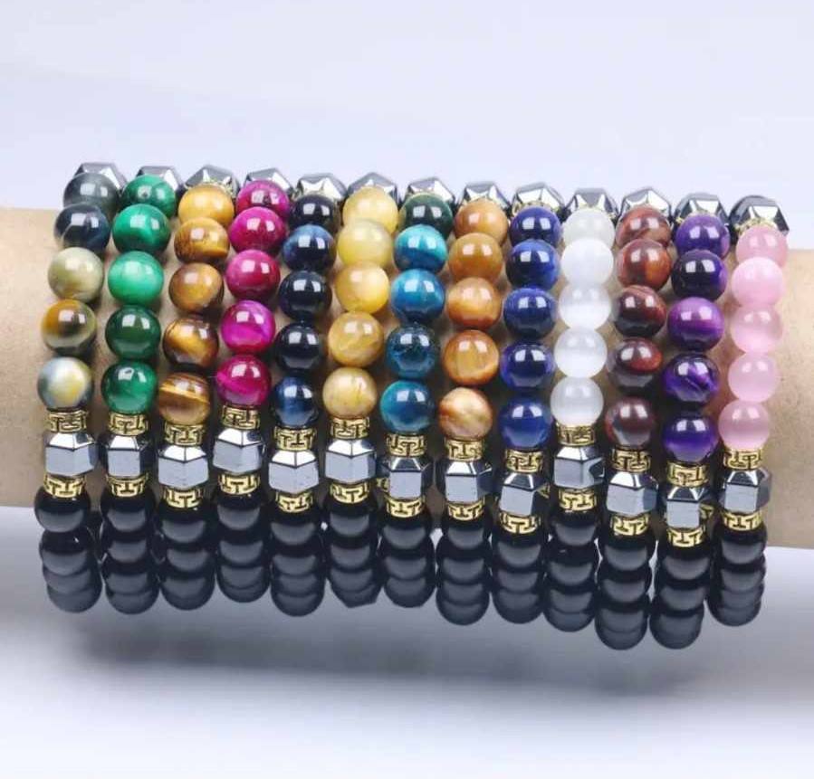V teh zapestnicah se srečujejo tri močne energije. Barvno tigrovo ali mačje oko deluje kot energijski prevodnik, ki nežno odpira specifične čustvene tokove in notranje uvidenje. Obsidian je zaščitnik – močan, temen kamen, ki deluje kot ogledalo resnice in hkrati kot ščit pred zunanjimi vplivi. Hematit pa prinaša globoko stabilnost in prizemljitev, usmerja tvojo energijo navznoter in ti pomaga ohranjati jasnost tudi v čustvenem kaosu.