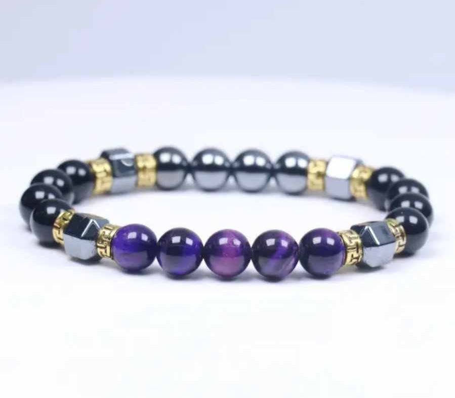 V teh zapestnicah se srečujejo tri močne energije. Barvno tigrovo ali mačje oko deluje kot energijski prevodnik, ki nežno odpira specifične čustvene tokove in notranje uvidenje. Obsidian je zaščitnik – močan, temen kamen, ki deluje kot ogledalo resnice in hkrati kot ščit pred zunanjimi vplivi. Hematit pa prinaša globoko stabilnost in prizemljitev, usmerja tvojo energijo navznoter in ti pomaga ohranjati jasnost tudi v čustvenem kaosu.