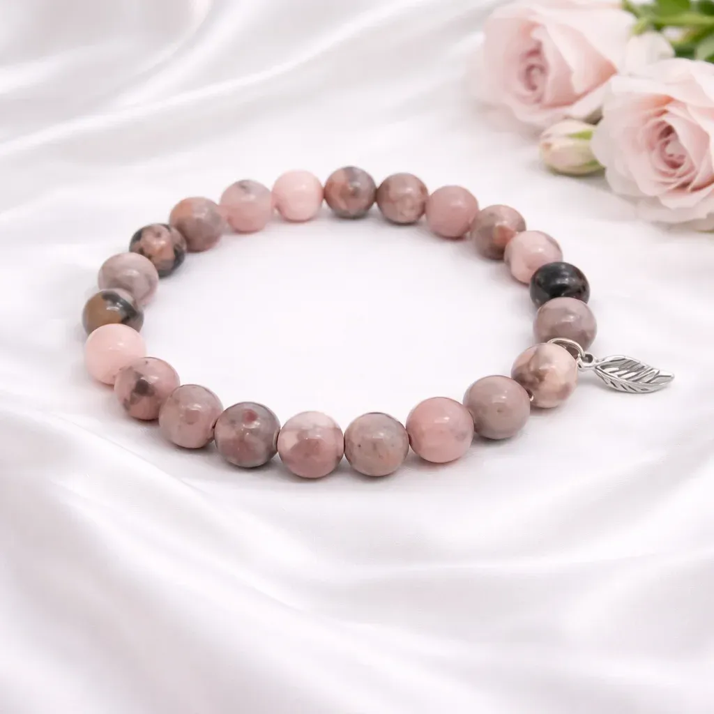 "List premagovanja" je simbol notranje moči, upanja in vztrajnosti v najtežjih trenutkih življenja. Zasnovana je za tiste, ki iščejo podporo, zaščito in navdih za premagovanje življenjskih izzivov. Kroglice zapestnice, v nežnih rožnatih in sivih tonih, predstavljajo ravnovesje med ljubeznijo in močjo, med nežnostjo in trdnostjo, ki jo potrebujemo, da stopimo skozi temačne čase.