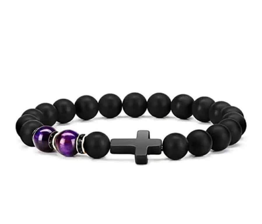 Ta zapestnica je mnogo več kot nakit – je simbol notranje moči, zaščite in zaupanja v življenje. Združuje naravna kamna oniks in tigrovo oko ter močan simbol križa, ki skupaj ustvarjajo talisman za ravnovesje, pogum in vero v dobro.