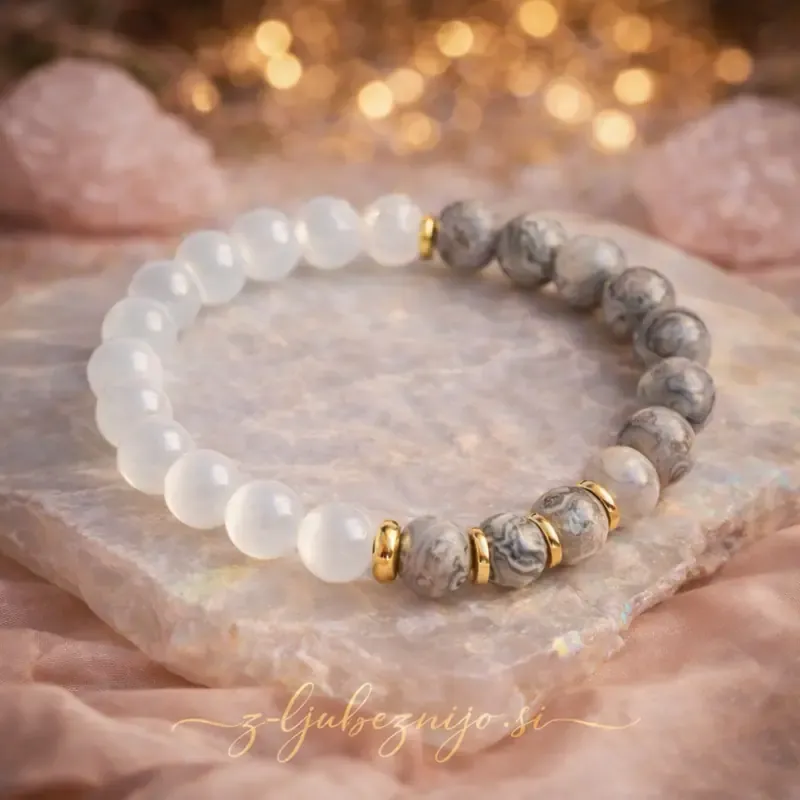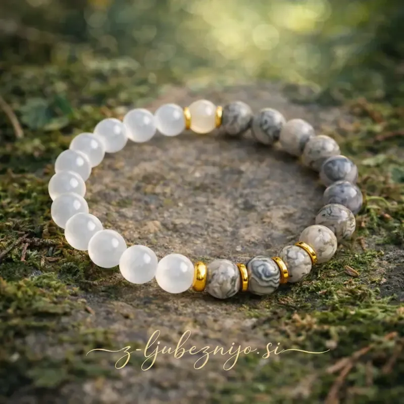 Notranji mir – zapestnica s sivim jaspisom in selenitom