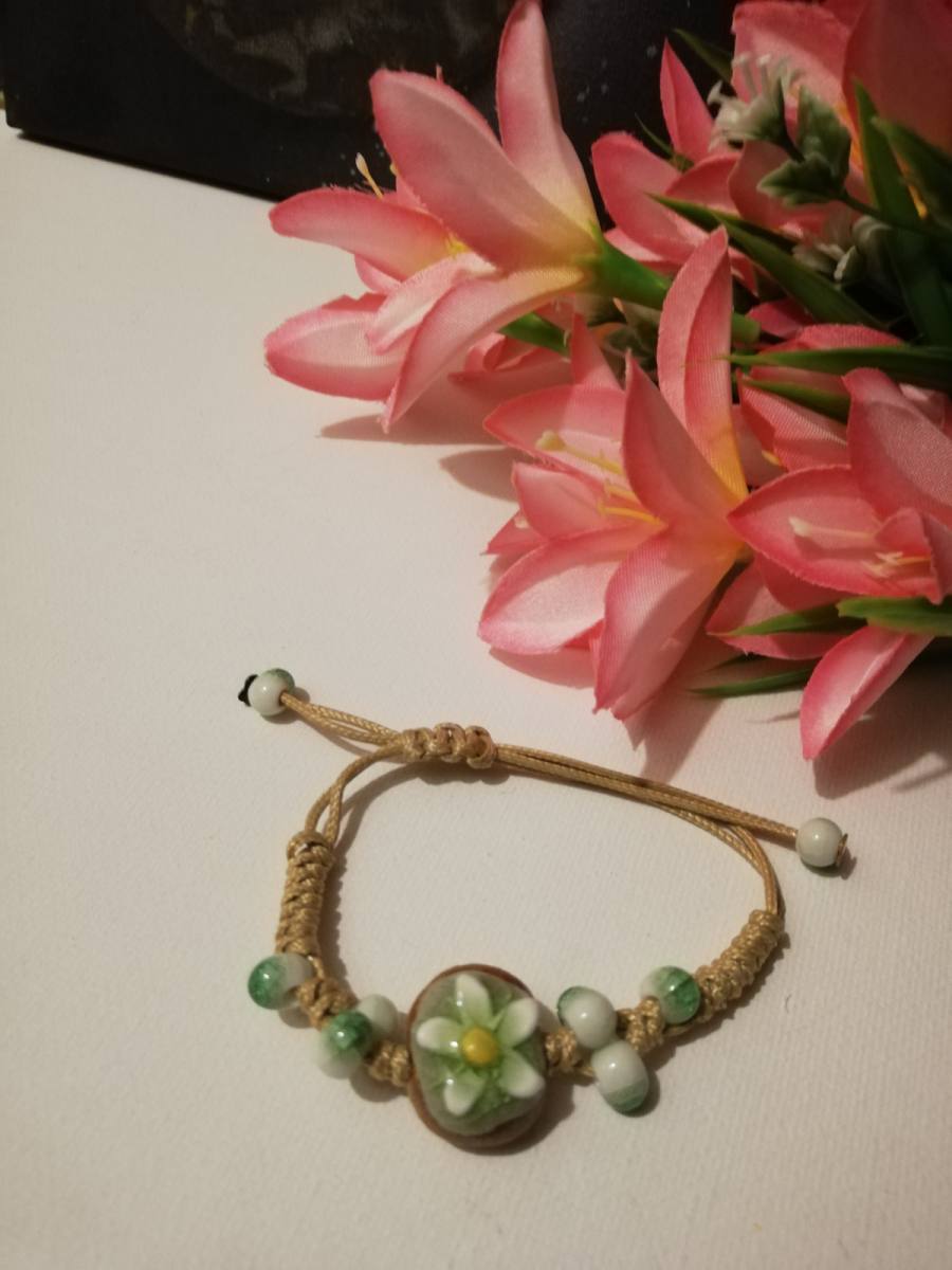 Osnova zapestnice je vrvica iz močne jute, ki je prilagodljiva za vse velikosti zapestij.