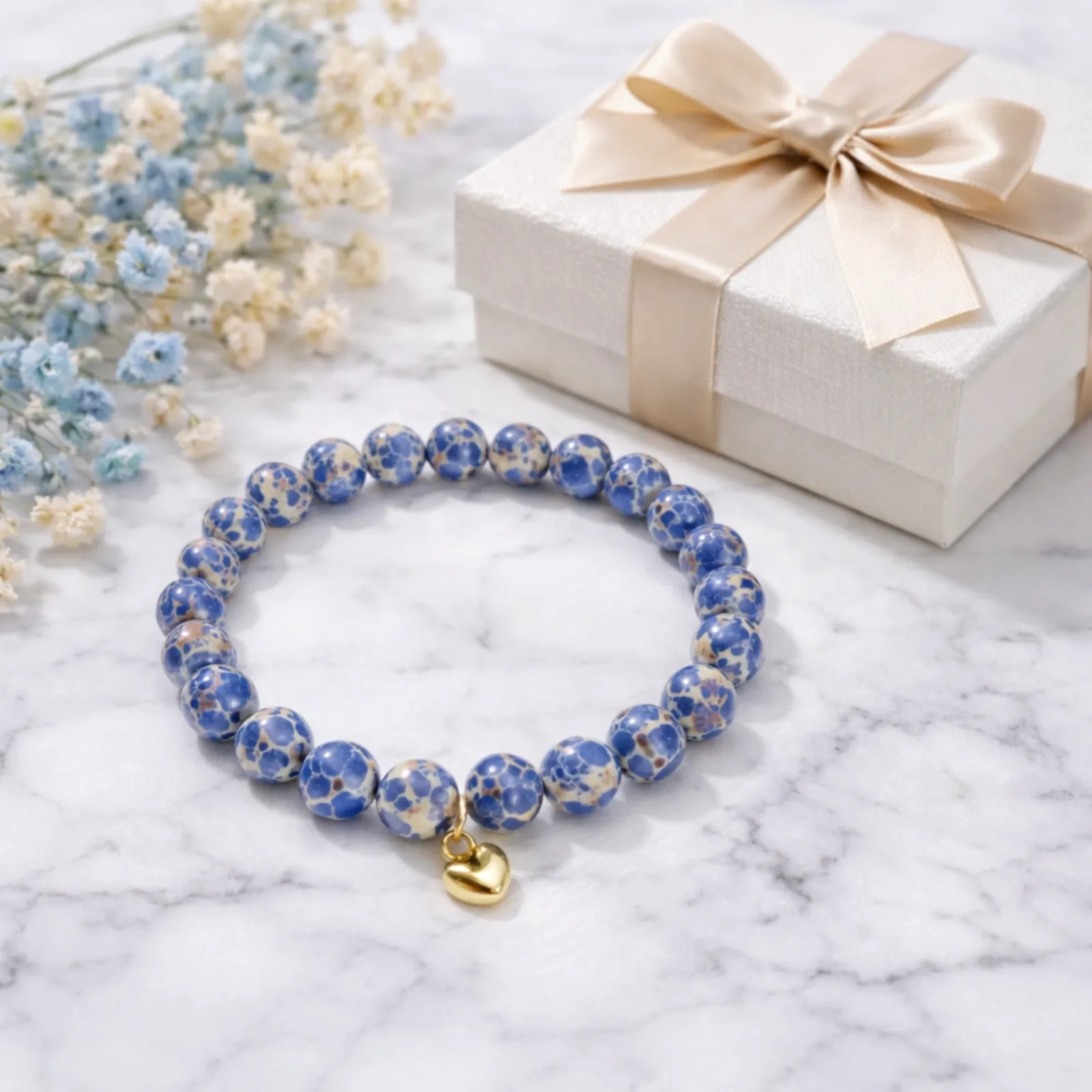 Zapestnica Energija bližine je ustvarjena kot simbol nežne povezanosti, zaupanja in čustvene harmonije. Modri odtenki delujejo pomirjujoče in vabijo k občutku varnosti ter notranjega ravnovesja, zlati srček pa nežno poudarja pomen bližine, topline in iskrene povezanosti med ljudmi. Skupaj ustvarjajo občutek miru, ki spremlja trenutke, ko si želimo več umirjenosti in razumevanja.
