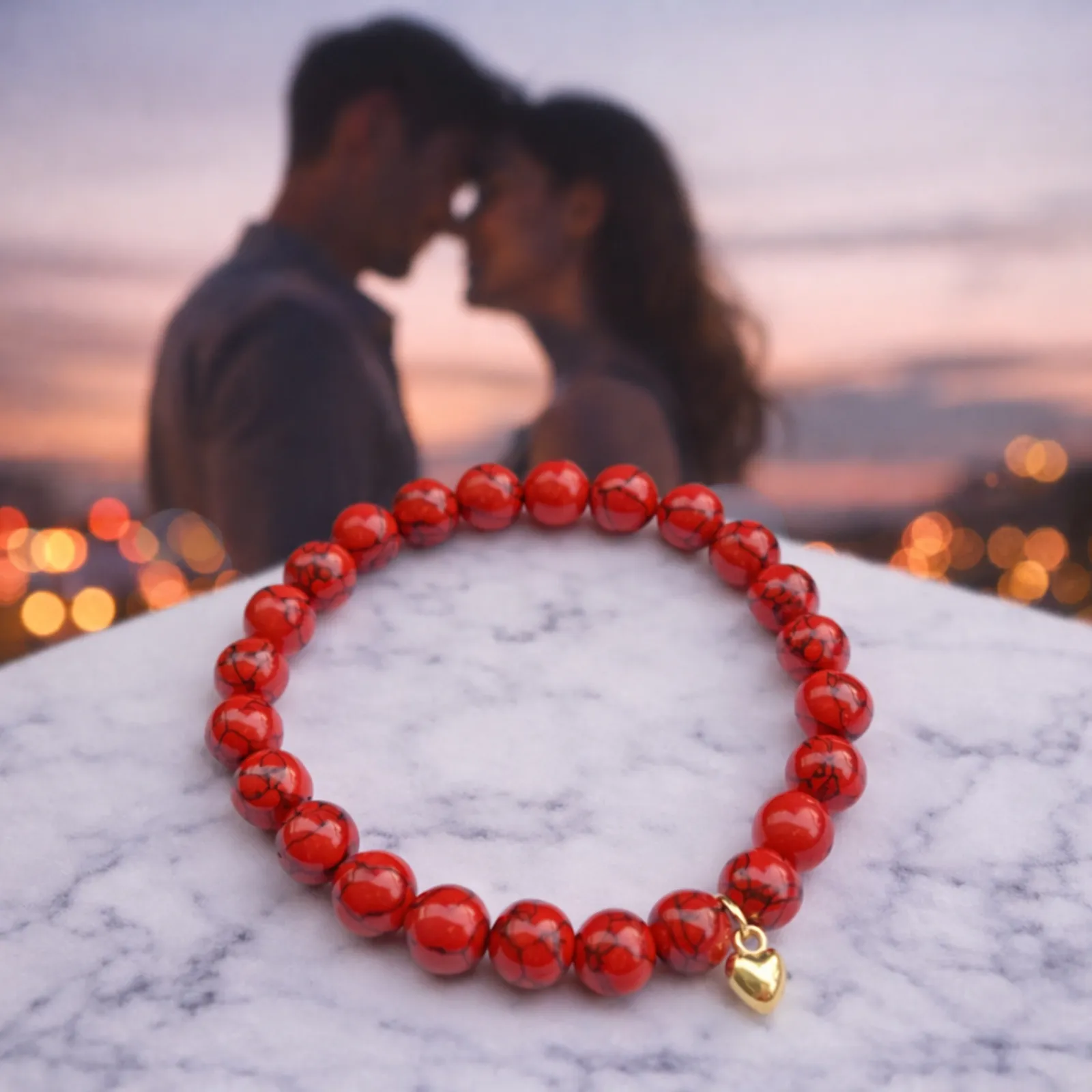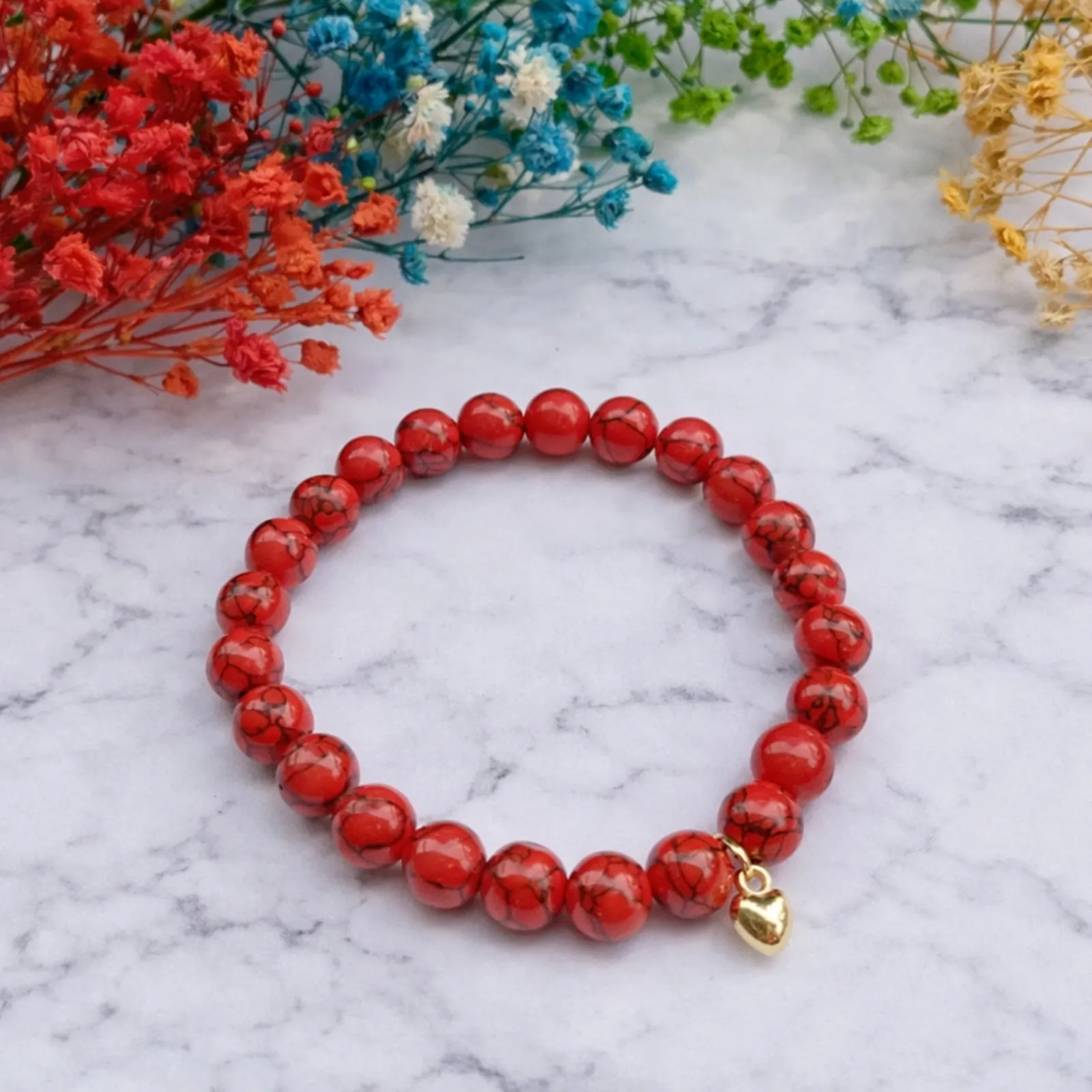 Zapestnica Energija ljubezni je ustvarjena kot nežen simbol čustvene povezanosti, topline in notranje moči. Rdeči kamni s svojo barvo ponazarjajo vitalnost, strast in življenjsko energijo, medtem ko majhen zlati srček predstavlja ljubezen, bližino in iskreno namero. Celota deluje harmonično in umirjeno, hkrati pa nosi močno sporočilo o odprtem srcu in čustvenem ravnovesju.