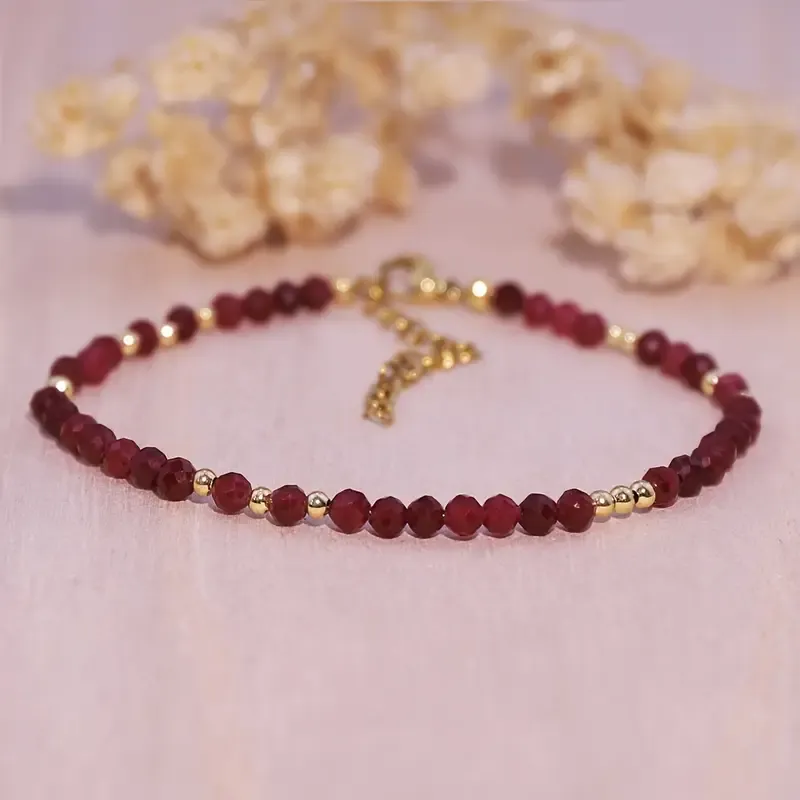 Zapestnica iz kristala granata nežno spodbuja samozavest, voljo in notranjo moč. Pomaga prepoznati osebno vrednost, preseči dvome in iti samozavestno proti zastavljenim ciljem.