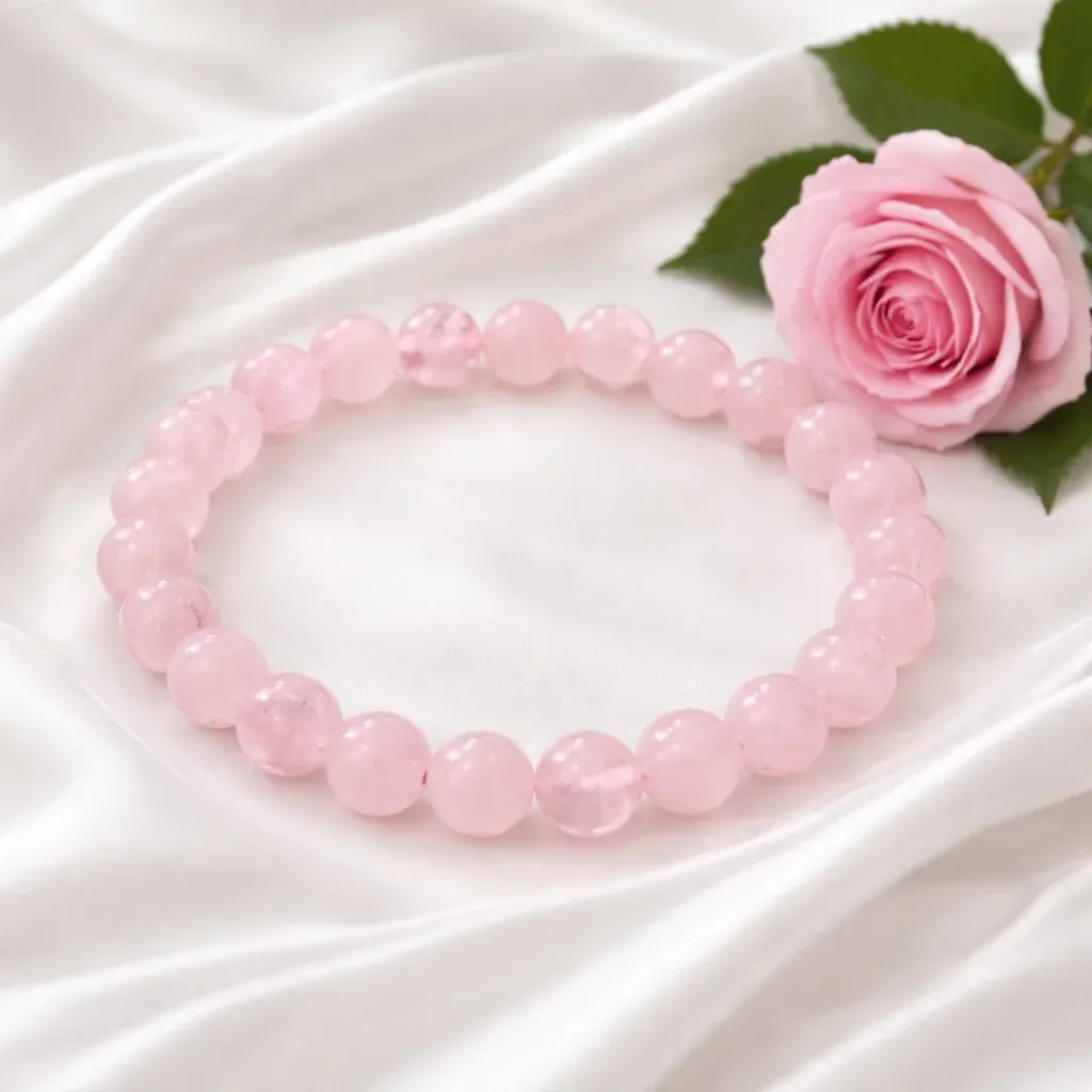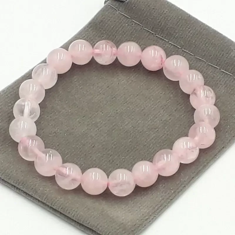 Zapestnica iz kristalov roževca je nežna povezava med srcem in dušo, talisman ljubezni in notranjega miru. Roževec, znan kot kamen brezpogojne ljubezni, s svojo nežno rožnato barvo prežarja toplino in nežnost, kot bi objemal srce v svoji svetlobi.