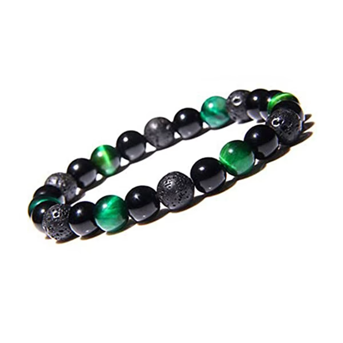 Zapestnica iz vulkanske lave, oniksa in barvnega tigrovega očesa – zaščita, moč in ravnovesje