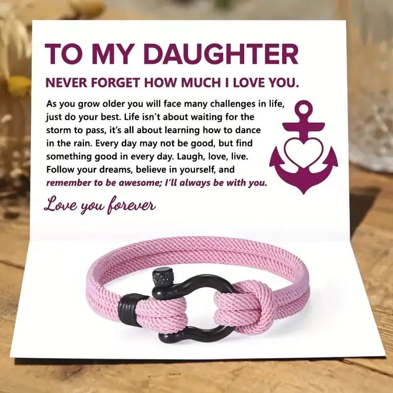 Zapestnica, namenjena ljubljeni hčerki, ni le kos nakita – je simbol ljubezni, podpore in nevidne vezi med starši in otrokom. Ob vsakem pogledu nanjo se hči spomni, da ni nikoli sama, tudi takrat, ko nas staršev ni fizično blizu. Zapestnica nosi globok pomen in nežno opominja, da so starši vedno ob njej, pripravljeni podpirati, ne glede na to, kje smo.