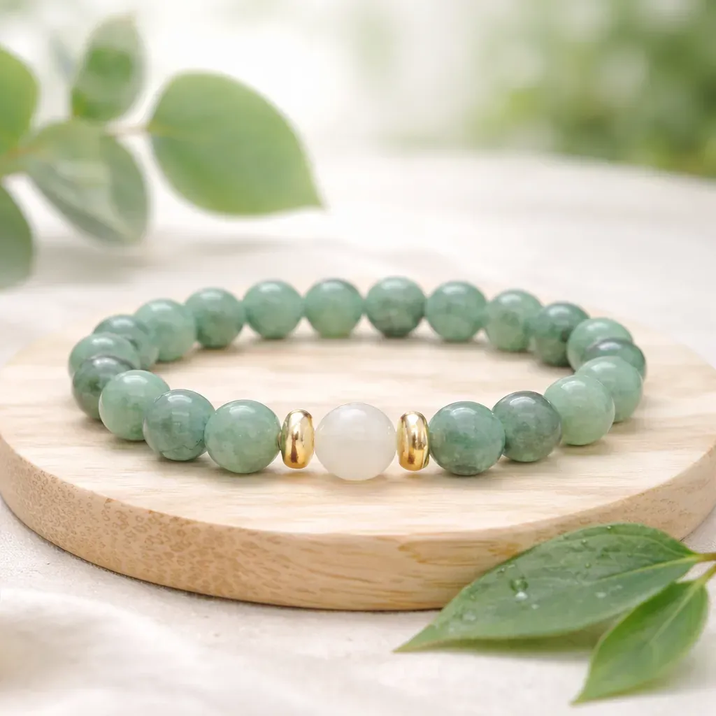 Zeleni aventurin je kamen rasti, upanja in poguma. Že stoletja velja za simbol novih priložnosti in notranje obnove. Njegova pomirjujoča energija te spodbuja, da zaupaš procesu, se odpreš življenju in narediš korak naprej brez strahu. Aventurin nežno umirja srce, pomaga sproščati stare skrbi in odpira prostor za optimizem, lahkotnost ter vero vase.