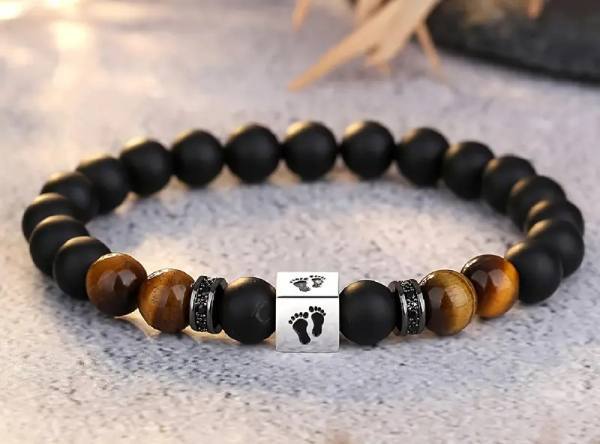 Tigrovo oko v tej zapestnici prinaša energijo jasnosti, poguma in odločnosti. Oče postane varuh, ki z mirno modrostjo sprejema odločitve, ki oblikujejo življenje njegovega otroka. Tigrovo oko krepi njegovo samozavest, odpira srce za pogumne odločitve in ga vodi k odgovornemu očetovstvu, polnemu ljubezni in razumevanja.