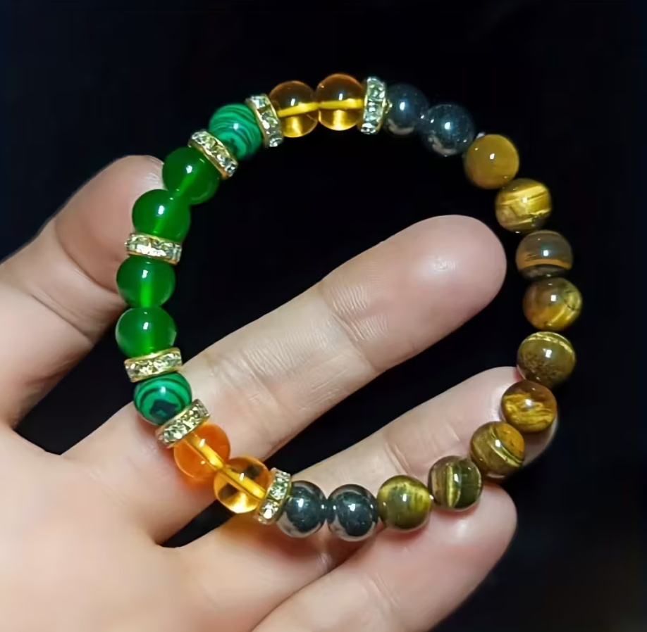 Zapestnica Skrivnost Uspeha je ustvarjena kot energijski talisman za privabljanje obilja, jasnosti in stabilnosti. Združuje simboliko kristalov, ki že stoletja predstavljajo bogastvo, zaščito in samozavest, ter delujejo kot opomnik, da je uspeh vedno povezan z notranjo naravnanostjo in željo po rasti.