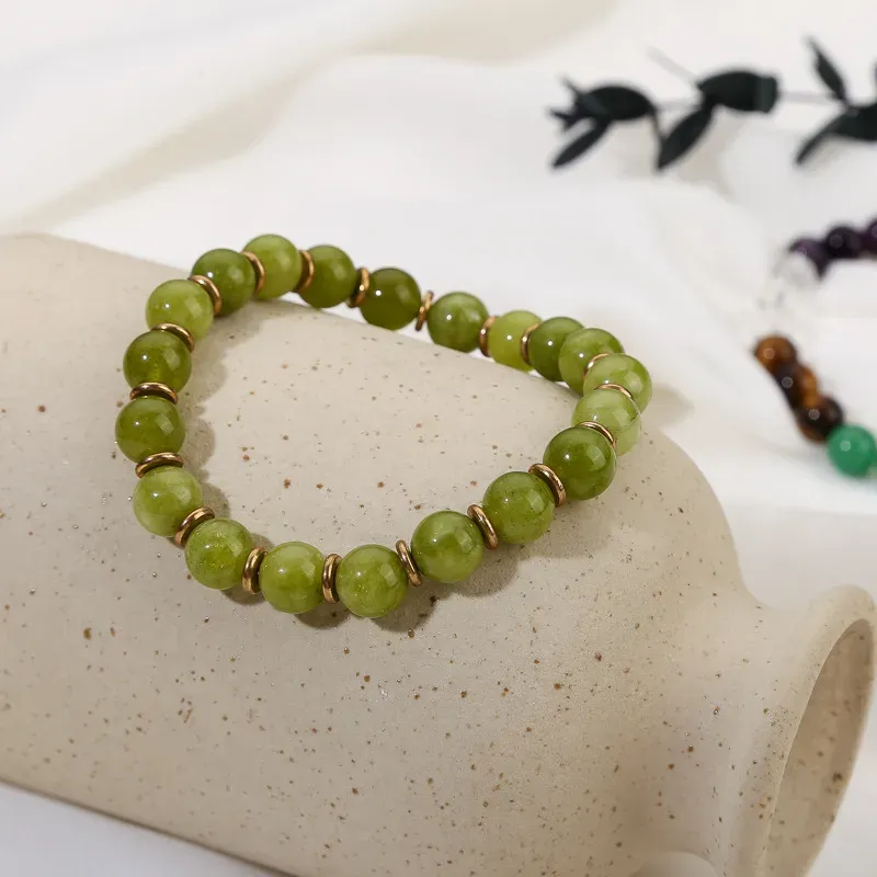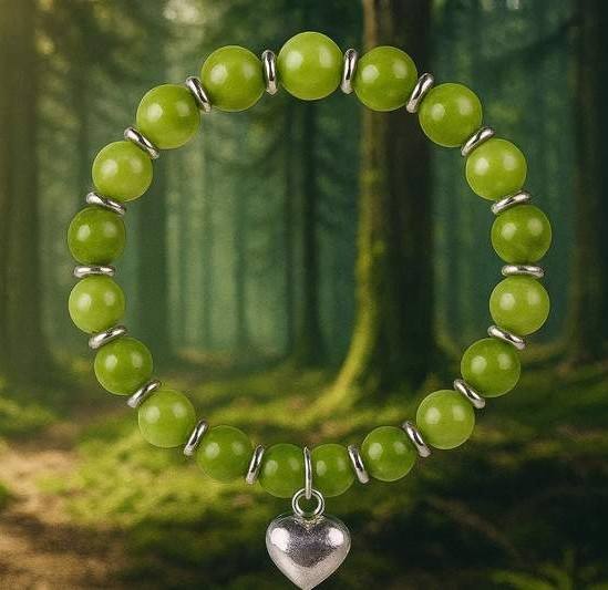 Zapestnica Spuščanja Bolečin je ustvarjena kot nežna opora srcu in duši, ki nosita preveč. Naravni zeleni žad je že tisočletja poznan kot kristal zdravljenja, sprostitve in čustvene modrosti. Njegova mehka zelena energija deluje pomirjujoče, raztaplja napetosti in pomaga osvoboditi bremena, ki jih nosimo v sebi – pa naj bodo to stare rane, skrbi ali potlačena čustva.
